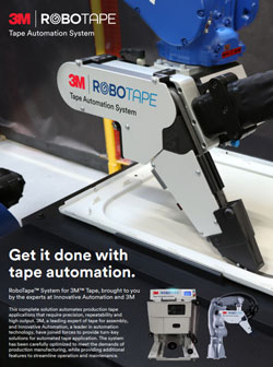 Meet the most innovative solution for automated tape production capable of achieving unparalleled precision, repeatability and high output rates. Developed by Innovative Automation and 3M with close attention to the manufacturing sector's specific needs, the customizable RoboTape™ system streamlines operation procedures and maintenance requirements.