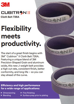 3M Cubitron II cloth belts contain grinding aid for anti-loading and cool cutting.