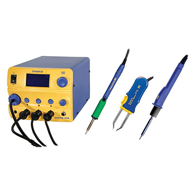 The New HAKKO FX-972 Dual Port Soldering Station is a powerful, 200W multi-handpiece soldering station. The FX-972 supports eight types of handpieces, including standard, micro, rework tweezers, micro tweezers, heavy-duty irons, and nitrogen handpieces.
