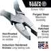 The Klein Tools D213-9NE Features:- High-leverage design. Rivet is closer to the cutting edge for 46 Percentage greater cutting and gripping power than other plier designs