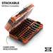 The Klein Tools 65121IMPCT This 23-piece SAE and metric deep-well impact socket set is built for tough jobs, featuring the most common sizes up to 13/16-Inch and 19 mm. Sockets offer superior access for hard-to-reach areas, while stamped size markings with white in-fill and color-coded rings ensure quick identification. Made from heat-treated Cr-Mo steel, these sockets withstand extreme torque. Includes three adapters and a MODbox accessory case for compact, modular storage.