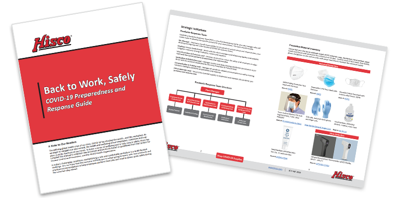 As COVID-19 restrictions are lifted and employees head back to work, many companies are faced with questions about safety, hygiene and overall prevention of COVID-19. Return to work responsibly with Hisco’s free Back to Work, Safely guide for COVID-19 preparedness and response, compiled to help you establish new processes and protocols based on guidelines from the Centers for Disease Control and Prevention, and the World Health Organization. Our free, practical guide features: