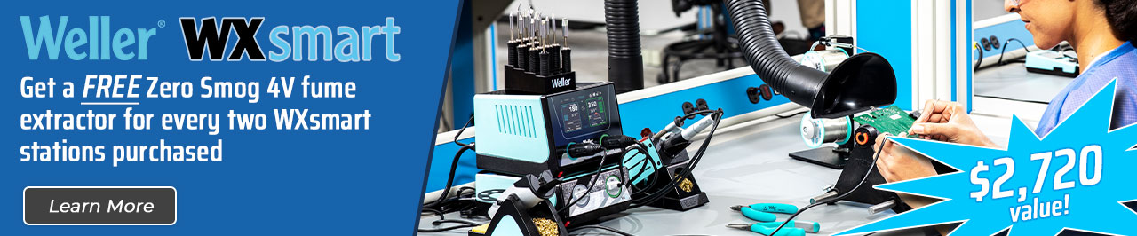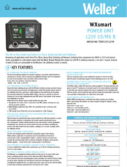 The all-inclusive, Industry 4.0-ready WXsmart hand soldering platform delivers optimal connectivity, supporting IoT traceability with mobile-enabled, easy remote-control access. The most versatile, controlled and secure hand soldering solution on the market, Weller WXsmart is engineered to connect you to the future of soldering, acting as the “brain” of your workbench and consolidating your soldering applications into a single soldering platform—including general-purpose, high-precision and heavy-duty soldering, as well as desoldering, rework and hot air tasks. Easily stay connected and in control via the intuitive Weller WXsmart app directly from your phone for complete process control. Already using a Weller soldering station? Most of your tips and tools will easily transfer to your new Weller WXsmart for a seamless upgrade.